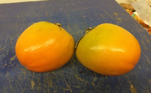 Die Kaki, auch genannt Kakipflaume, ist eine orangefarbene, sieht aus wie eine große Tomate, süß schmeckende Frucht des Kakibaumes.
